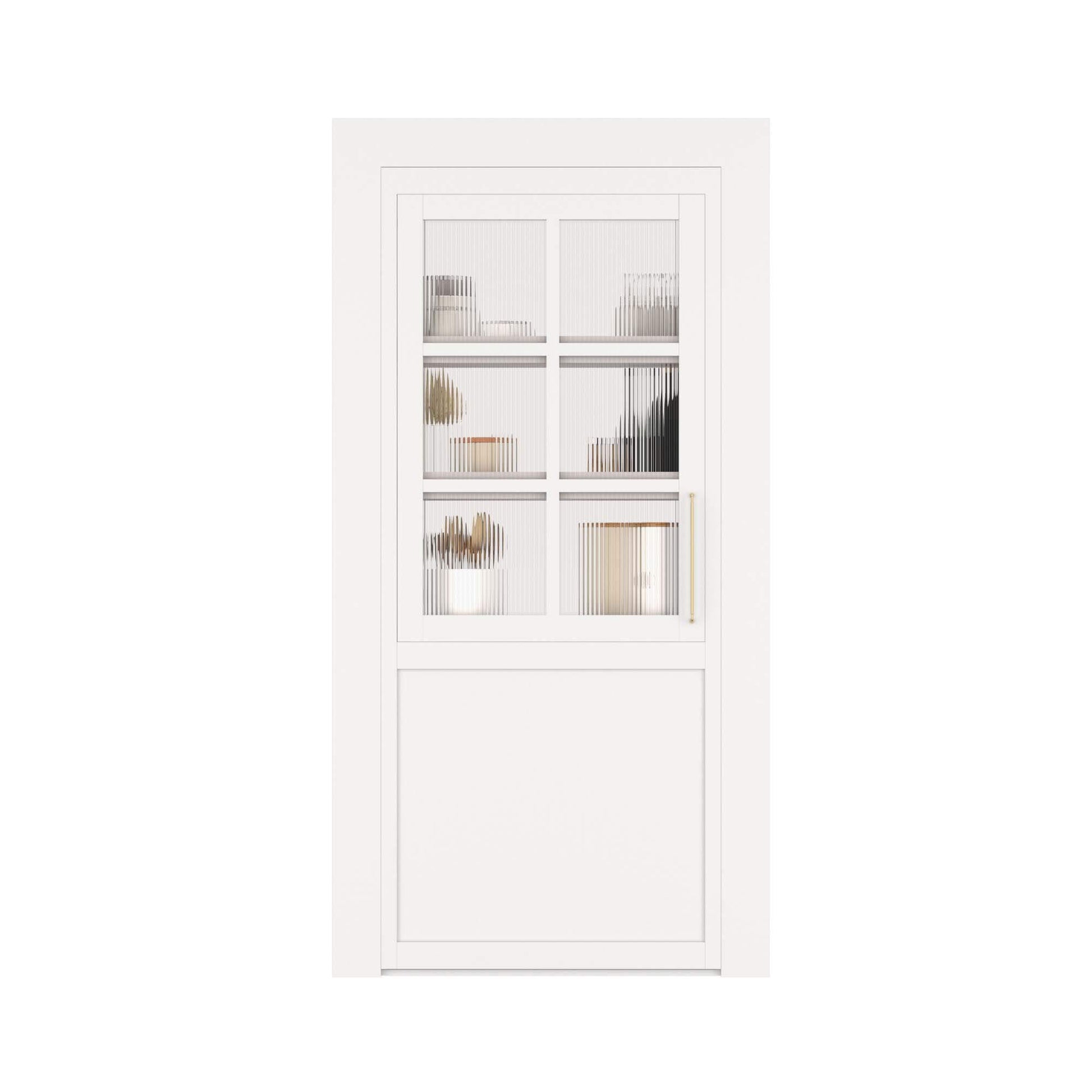 Our Dutch Pantry Murphy Door is a sophisticated fusion of style and practicality, designed to maximize storage without sacrificing elegance. The front-facing reeded glass door provides easy access to everyday essentials, blending seamlessly into any kitchen or pantry space with its timeless, textured design. Meanwhile, the rear-facing lower cabinet offers discreet, long-term storage, keeping clutter out of sight while maintaining a polished look. Thoughtfully crafted for both beauty and function, this innovative dual-access pantry door ensures that organization has never looked so good—because with Murphy Door, there’s always more than meets the eye.