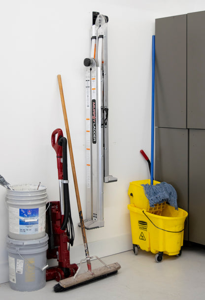 The Murphy Ladder Wall Hanger is the best and safest way to store your Murphy Ladder. It easily hangs in the garage, closet, pantry, RV, camper, barn, she-shed, man-cave, bunker, or anywhere else you want to store your ladder.