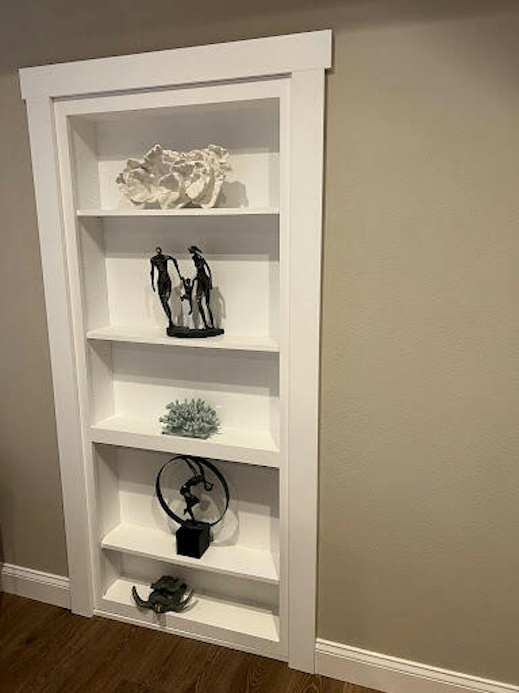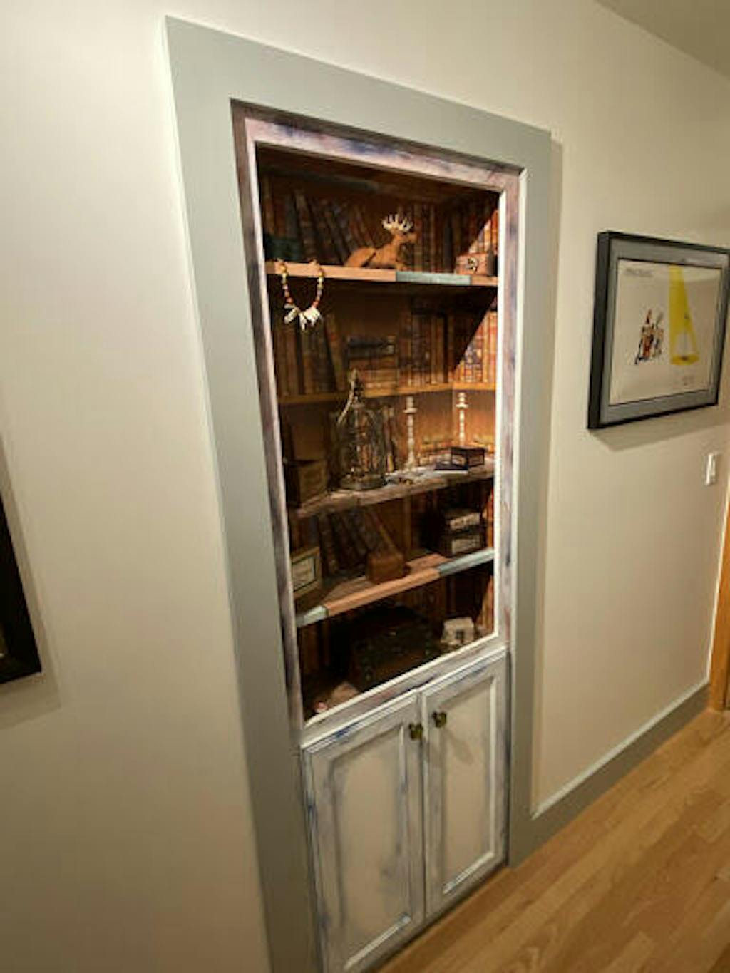 I'll attach some photos. Everything I did to these doors I did solo with items you can find on Amazon and Lowes. Minimal expense, maximum imagination. Remember, I knew NOTHING about secret doors before these arrived.