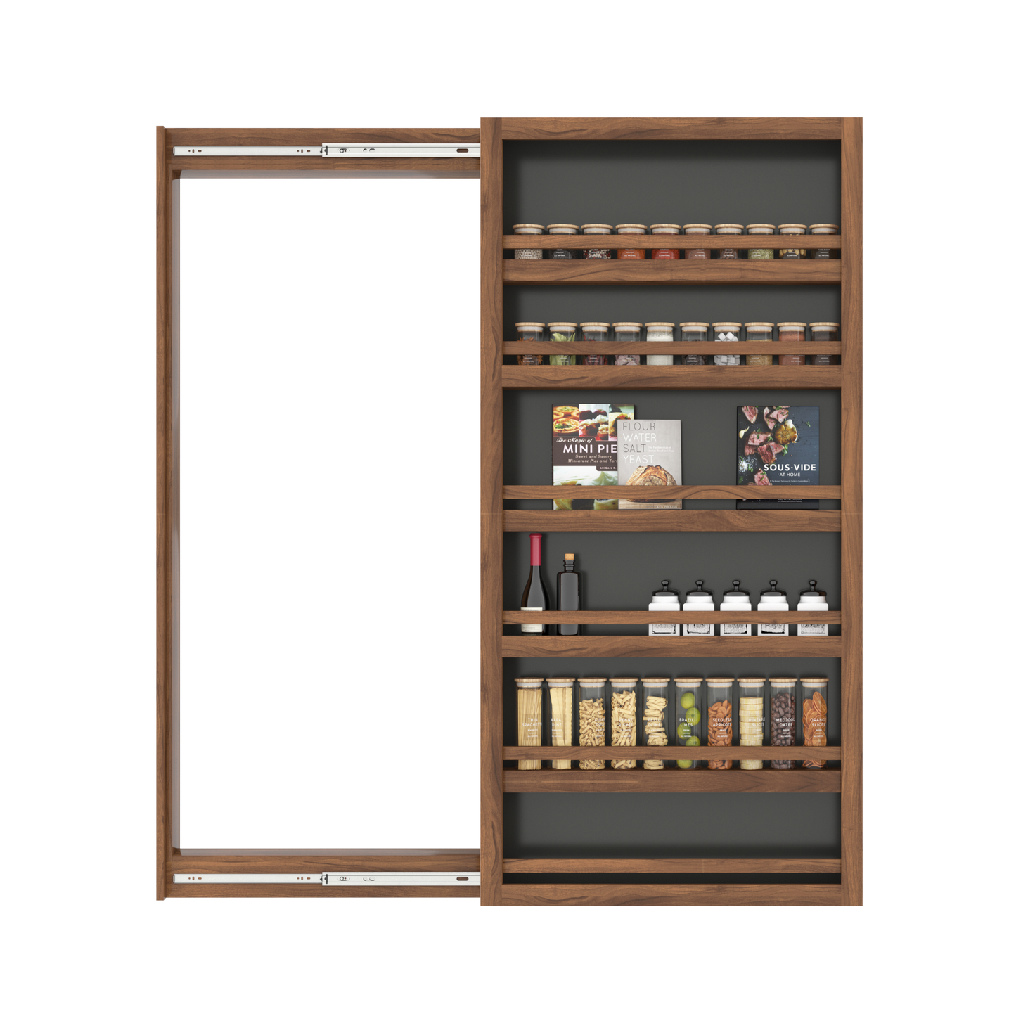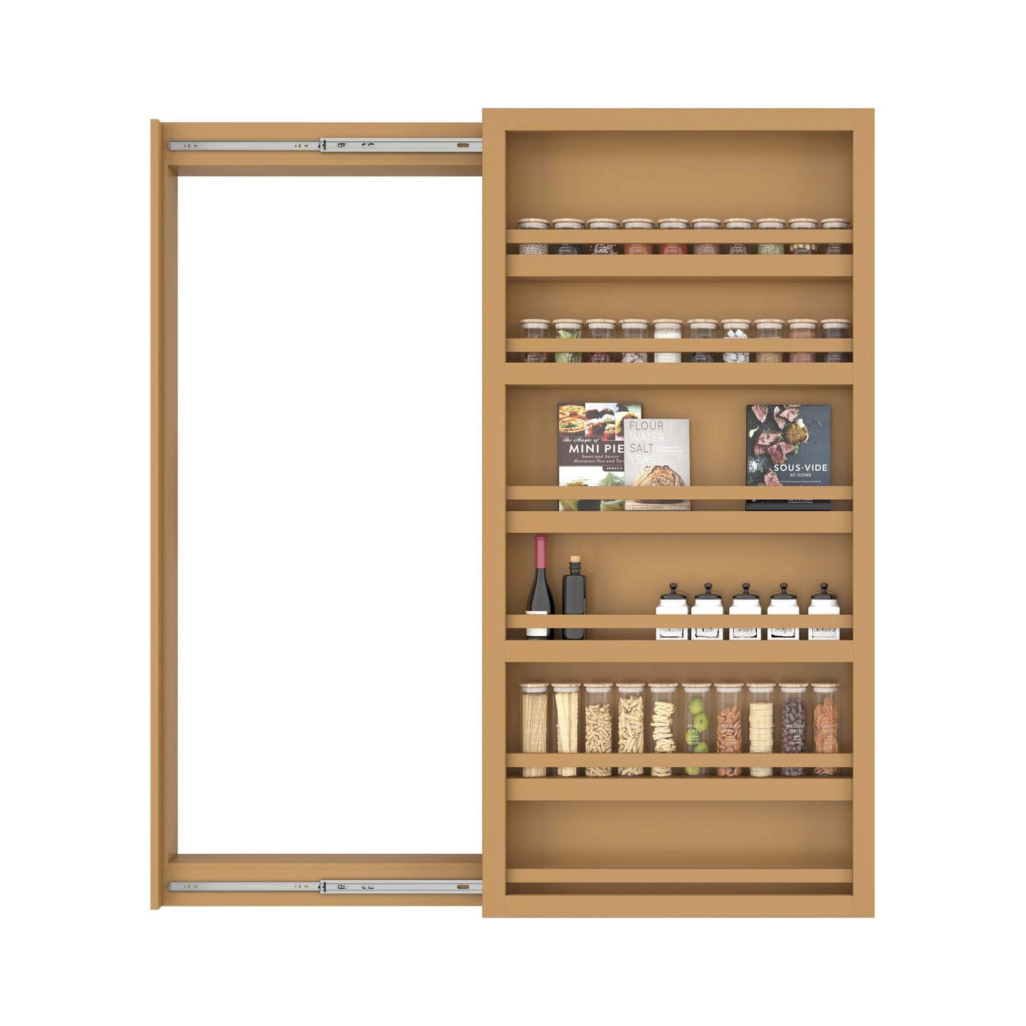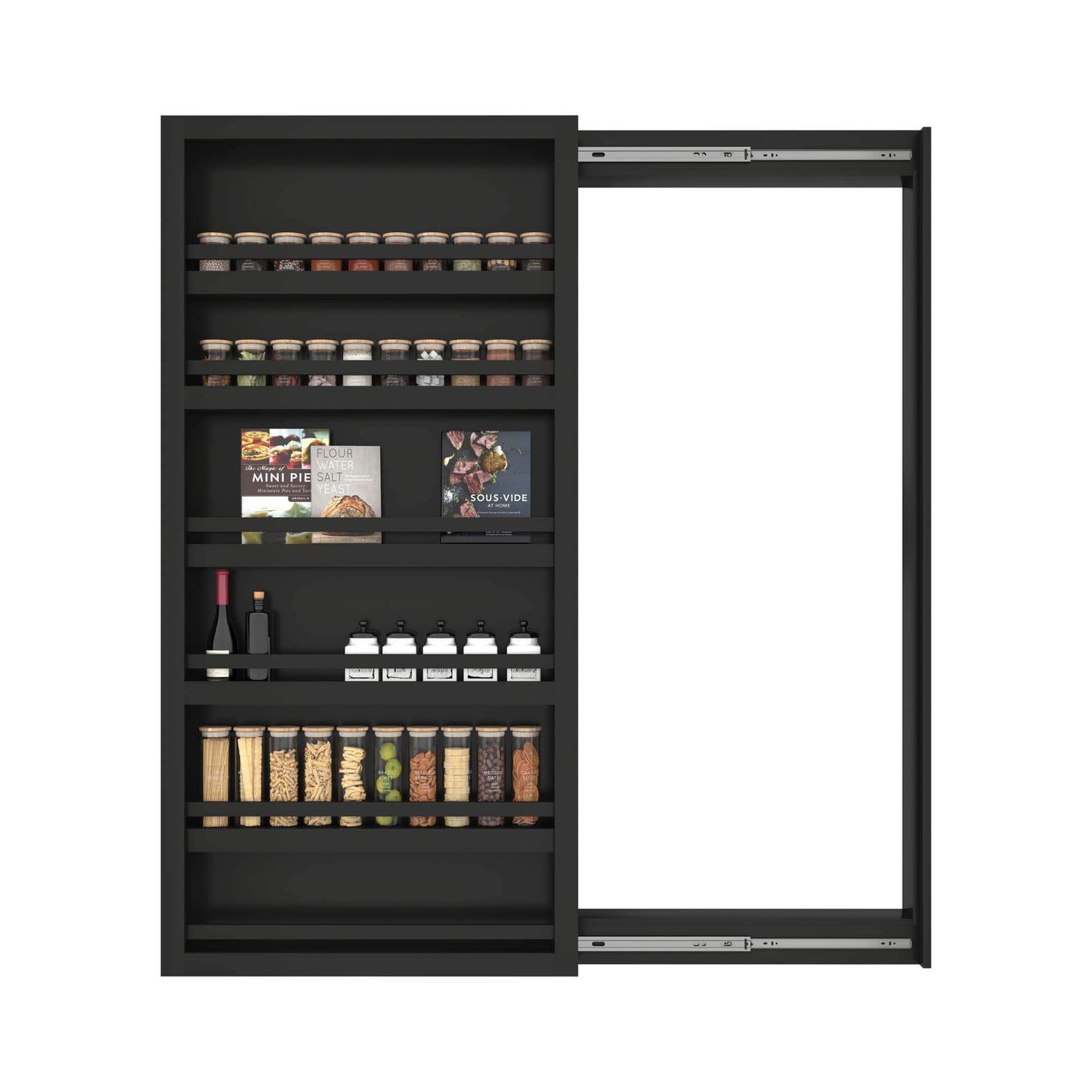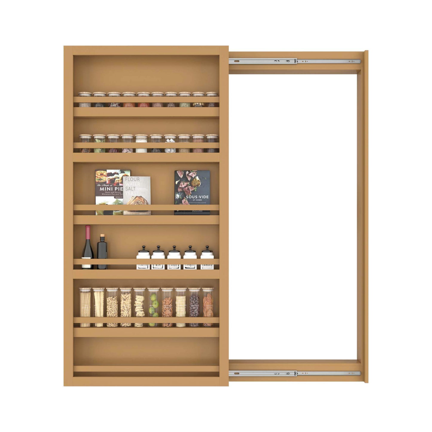 Superior Material: Constructed from a durable MDF core, featuring 2 fixed shelves and 3 adjustable shelves, it provides ample space for your books, spice racks, and other treasures.